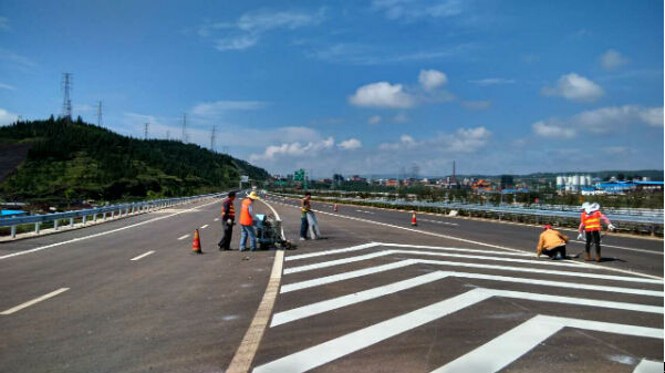 道路交通標(biāo)線(xiàn)是以規(guī)定的線(xiàn)條、箭頭、文字等導(dǎo)向裝置劃于路面或其他設(shè)施上,管制引導(dǎo)交通和分散交通流的設(shè)施。道路標(biāo)線(xiàn)分為:熱熔標(biāo)線(xiàn),常溫